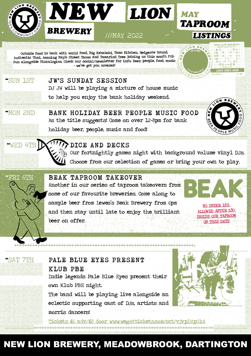Our latest listings ‘zine covering May is here!Find about about al the events happening in our taproom in May including STANNARY BREWING CO TAPROOM TAKEOVER, LAETITIA SADIER, MIKE JOYCE (THE SMITHS) DJ SET, Books & Beers, Dice & Decks, Drink & Draw and LOTS more...