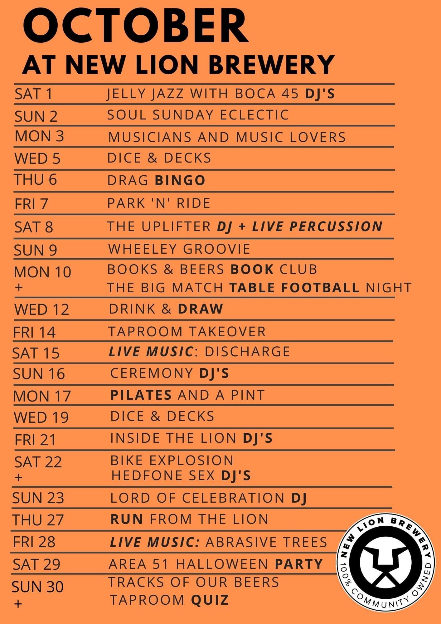 We have lots happening again in October at our taproom including the return of Drag Bingo, the legendary UK punk band Discharge live, a taproom takeover from Pretty Decent Brewing Co, our first Pilates and a Pint session, top reggae DJ The Uplifter and lots more…
